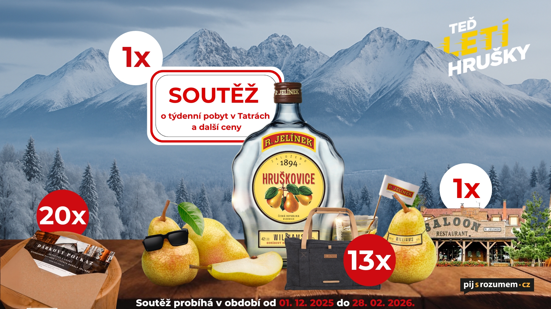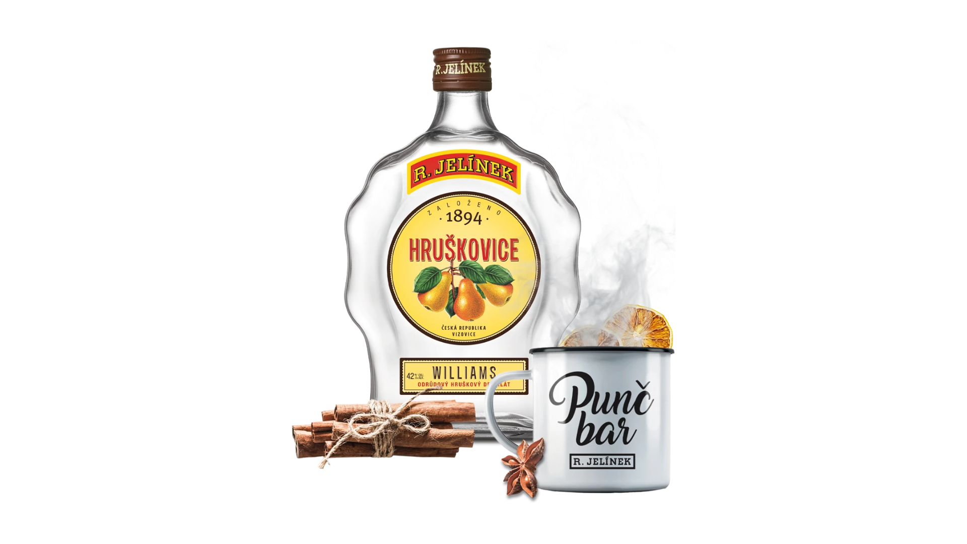 Nakupte v obchodě láhev R. JELÍNEK Hruškovice Williams 0,7l nebo 0,5l a nebo si v baru / restauraci objednejte 3 panáky R. JELÍNEK Hruškovice Williams